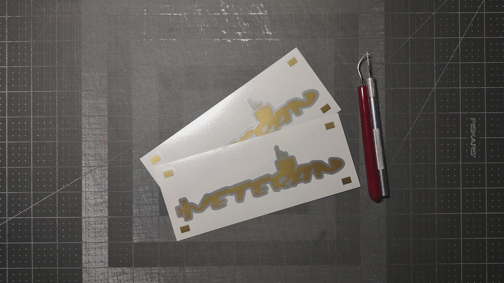 Artwork is cut from two pieces of premium outdoor vinyl layered on top of each other.